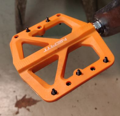Le cargo est équipé avec des pédales de base. Elle font l'affaire pour une utilisation légère, par beau temps. Je roule beaucoup et parfois à des endroits ou par des conditions dégradées. Que ce soit dans la neige, sous la pluie, sur des chemins de gravier ou de terre. Or je me suis rendu compte que les pédales peuvent être très glissantes, ce qui n'est pas très confortable, voire peut s'avérer dangereux. C'est la raison principale qui m'a fait changer mes pédales.